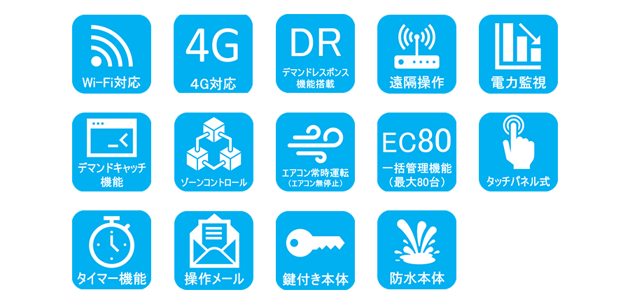 本体1台で室外機80台まで一括接続が可能です。また設定は8ブロック(ゾーン)まで分けて設定ができます。