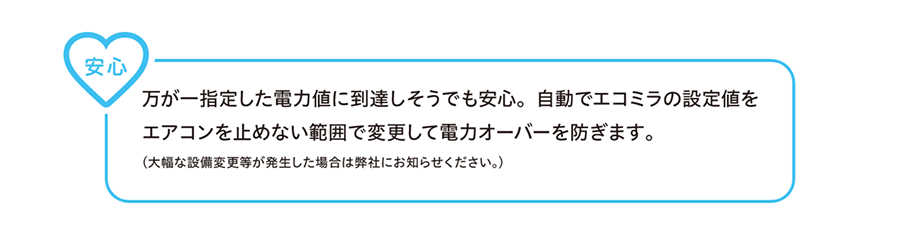 エアコンが止まることはないので、快適性を保ったまま自動で節電できます。